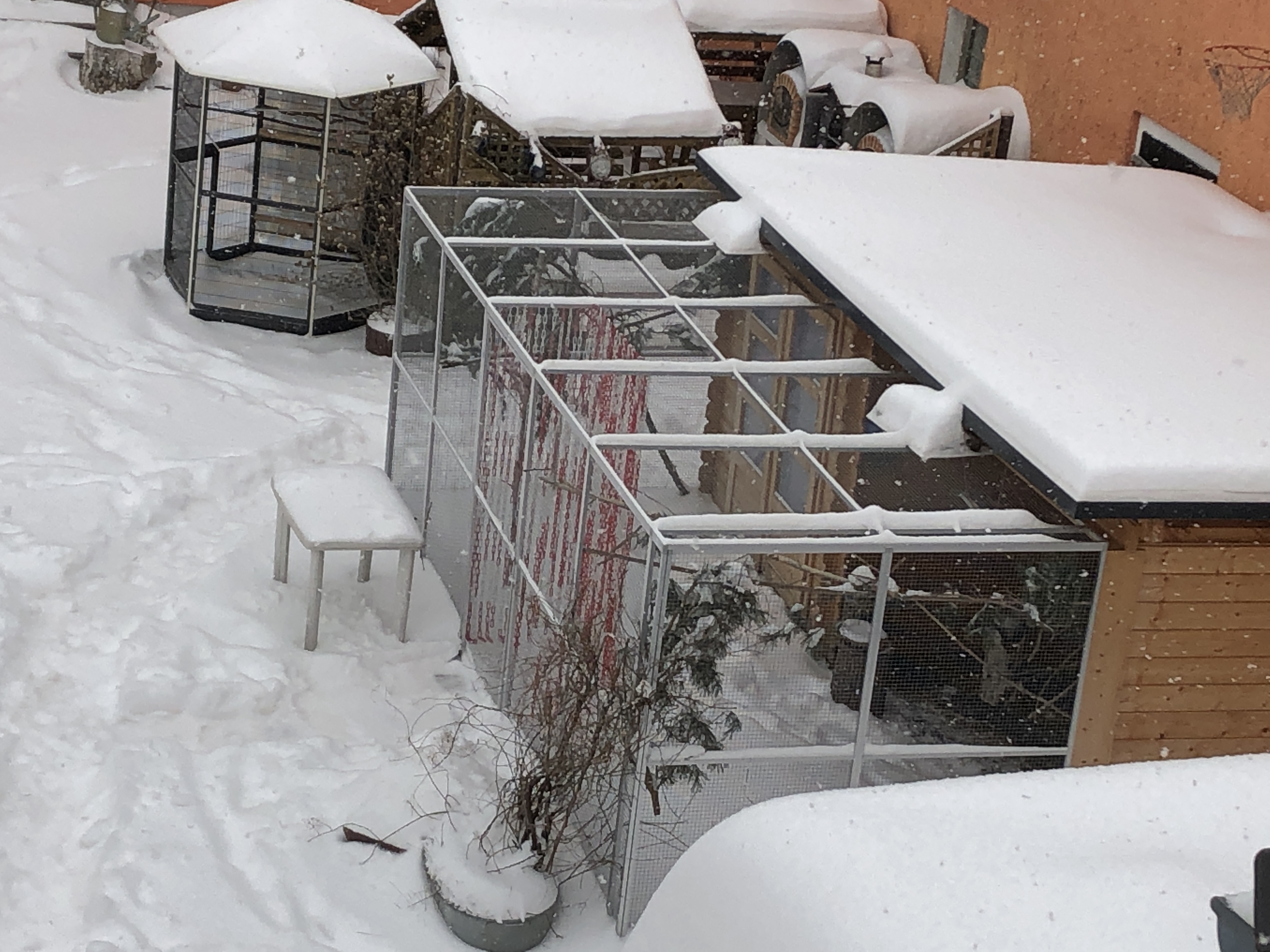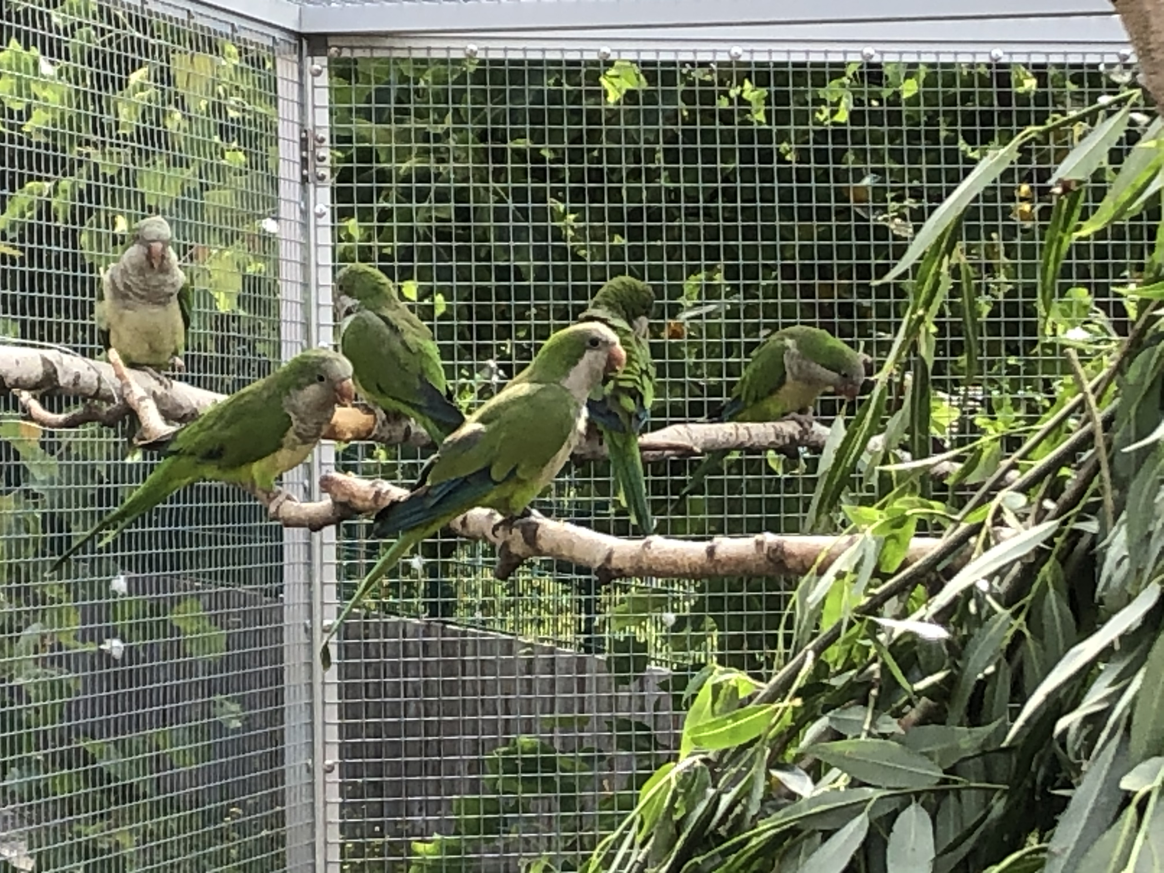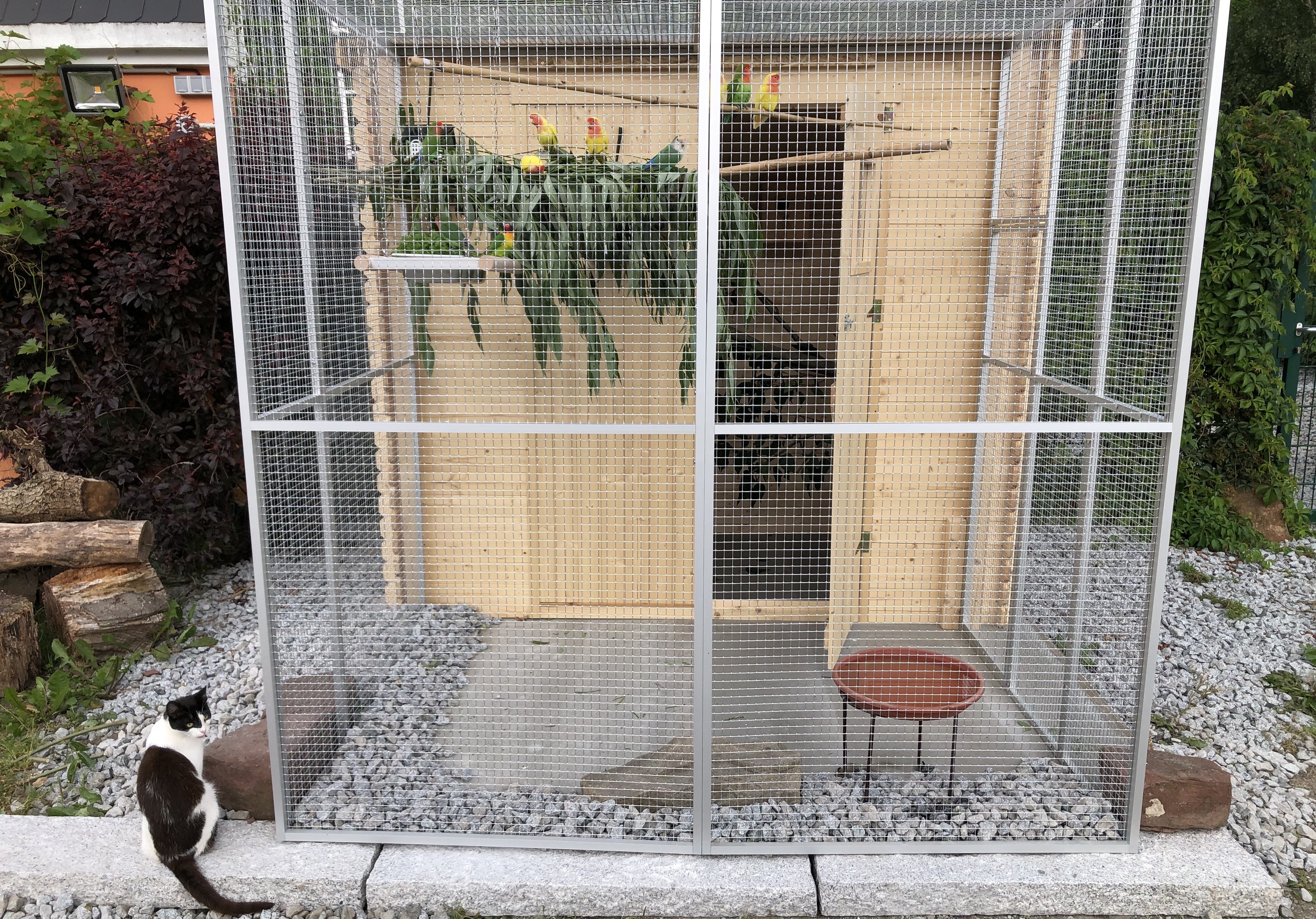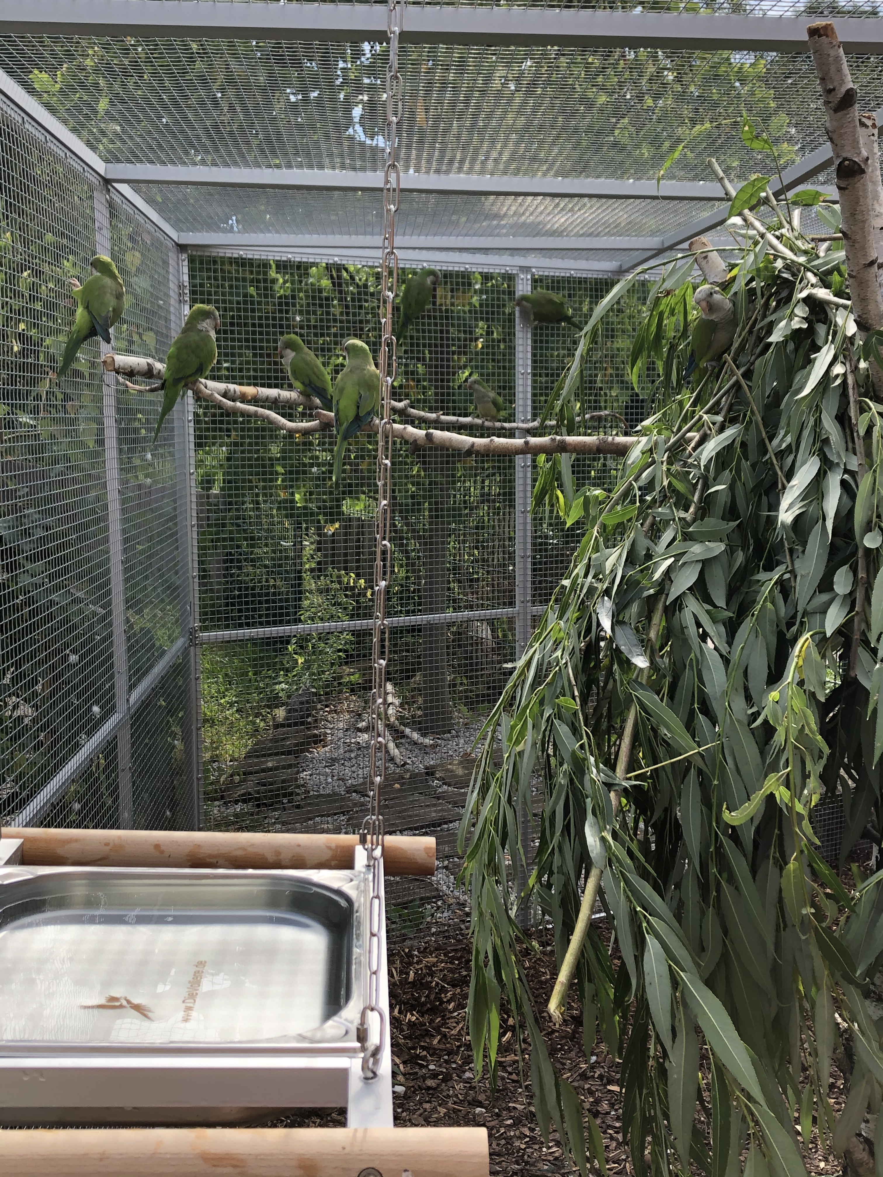 Die Nymphensittiche könnten auch in den Schutzraum fliegen. Er ist immer zugänglich und warm.
