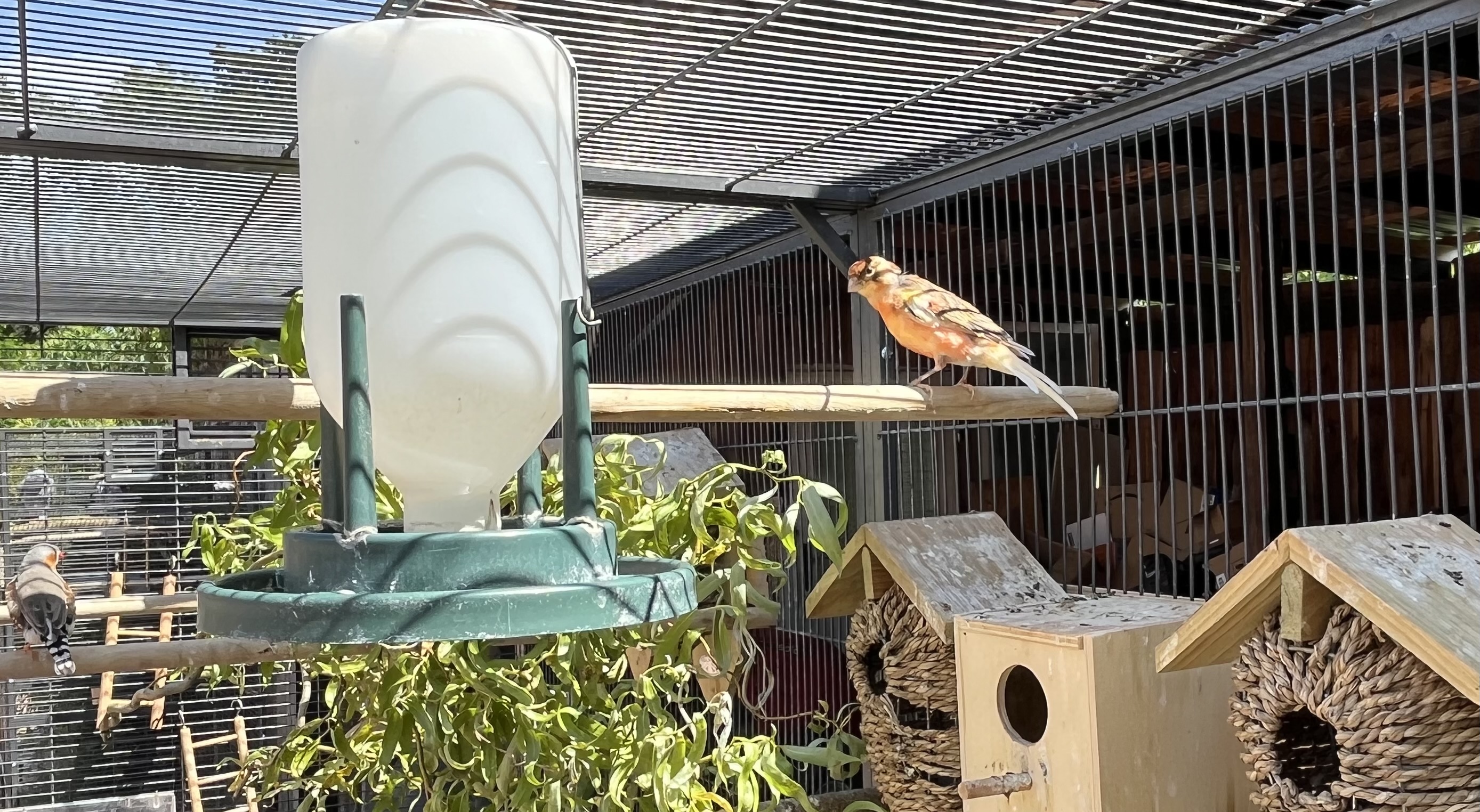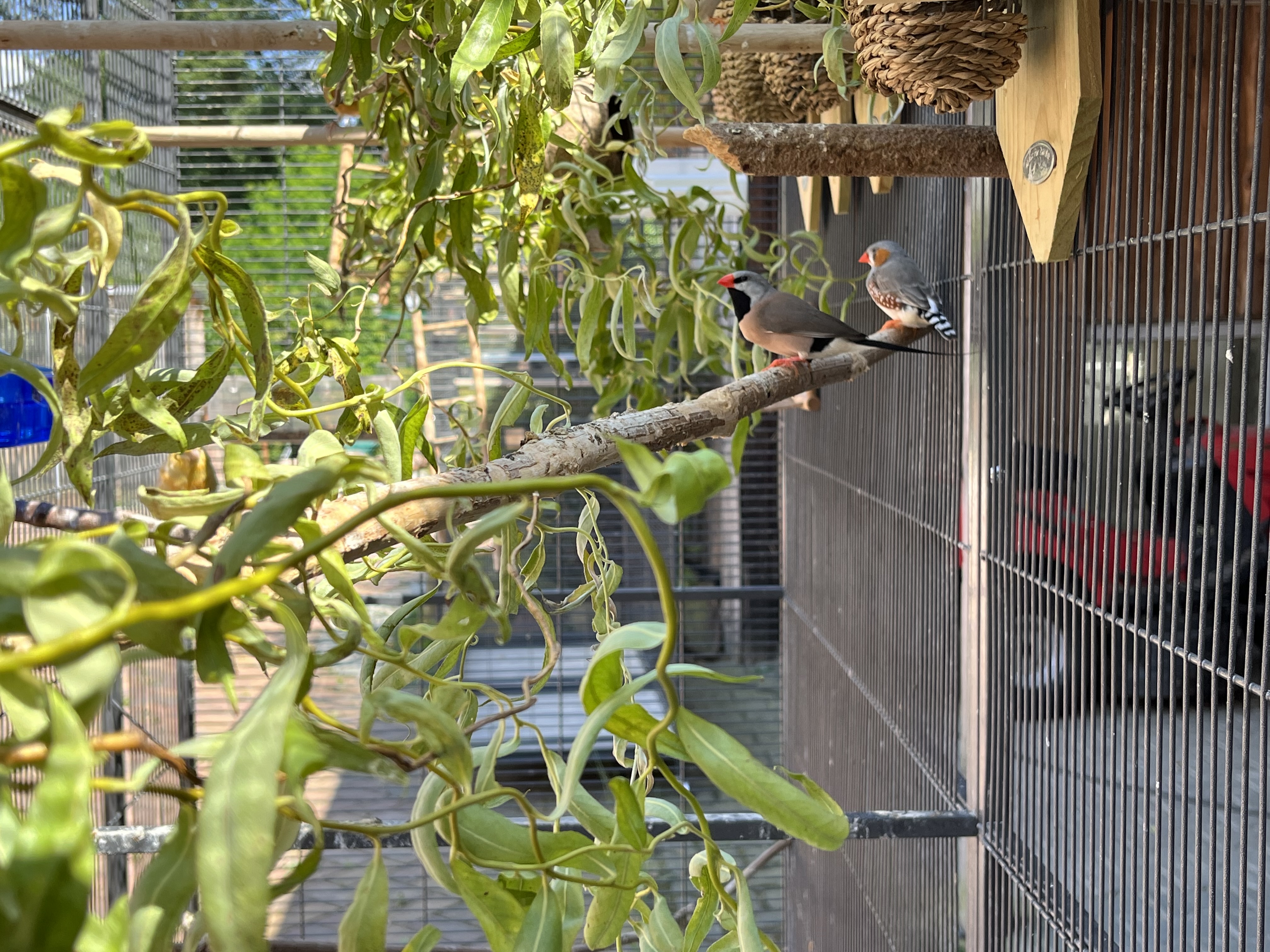 Unsere kleinen gefiederten Freunde sind in den kalten Monaten hier zu Hause und im Sommer sind sie tagsüber mit ihrer Voliere an der geöffneten Tür oder ganz draußen.